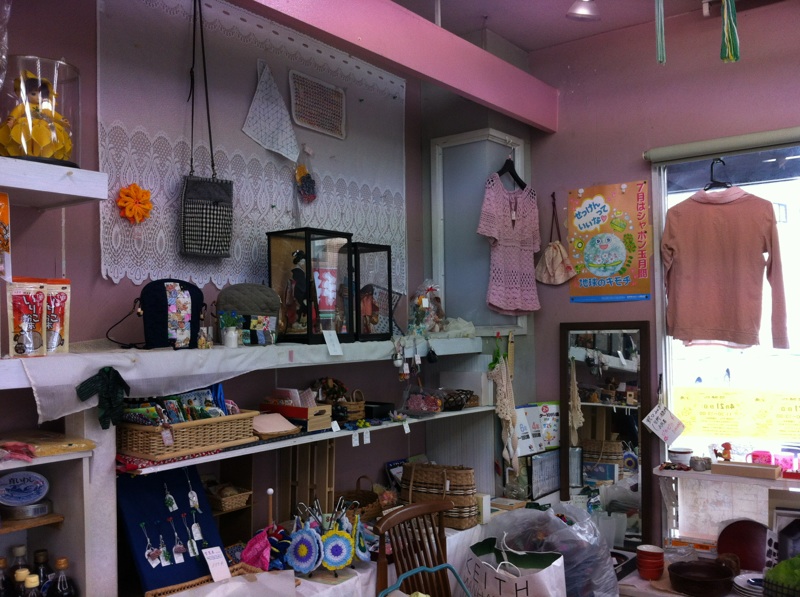 手作り品やリサイクル品がたくさん並んでいます。