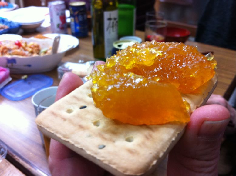 ◯さんの実家から送ってきたカリカリ梅や、